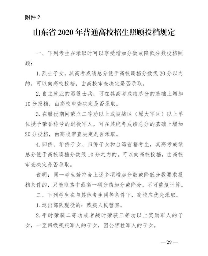 为做好我省2020年普通高等学校招生录取工作,根据教育部有关文件和《山东省招生考试委员会关于印发山东省2020年普通高校招生夏季考试和录取工作实施方案的通知》(鲁招考委〔2019〕4号)、《关于做好2020年普通高校招生工作的通知》(鲁招考委〔2020〕2号)等文件要求,制定本意见。
