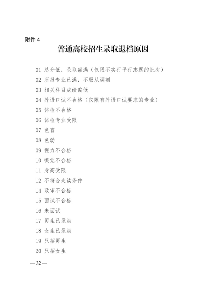 (五)退档。确定退档考生后,要注明退档原因并及时通过录取系统办理退档。填写的退档原因必须与实际情况相符。省教育招生考试院要认真审核退档情况,如有疑问,应与相关高校沟通协调或提出复议要求,高校应认真对待,及时纠正、答复或形成复议结果传真至省教育招生考试院。