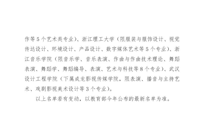 包括独立设置的艺术院校、参照独立设置艺术院校执行的其他院校,部属高校及部分省属高校除美术类专业之外的艺术类专业,省属公费师范生、市级政府委托培养师范生专业招生。