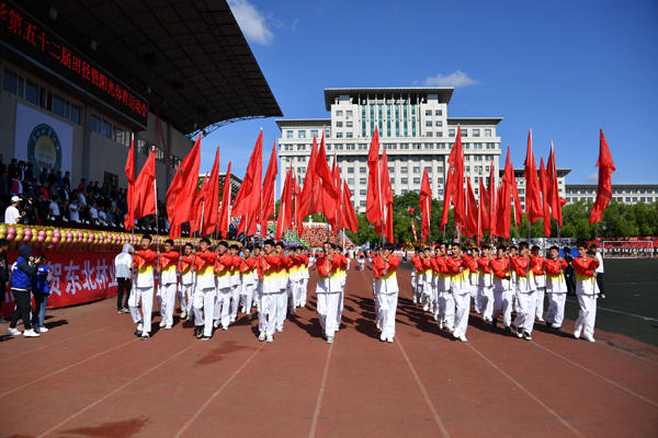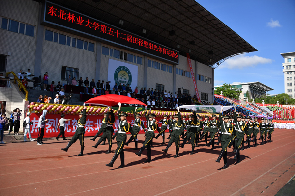 党委书记张志坤宣布:“东北林业大学第五十二届田径暨阳光体育运动会,比赛开始。”